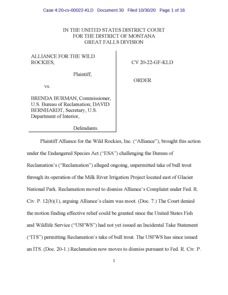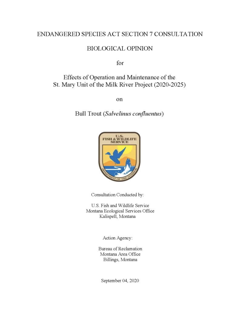 St. Mary Diversion Dam Biological Opinion from US Fish & Wildlife Services