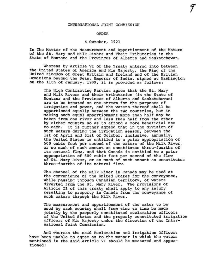 International Joint Commission 1921 Order